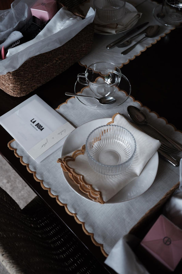 At TryoHome, we work closely with wedding planners, event designers and creative teams to create bespoke table linens and personalised details.