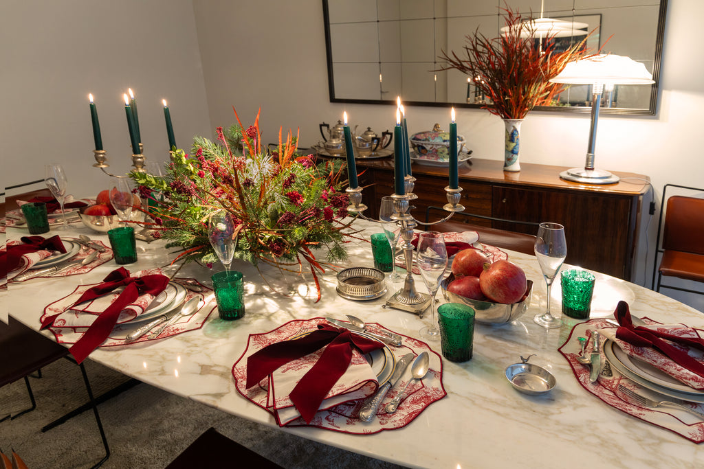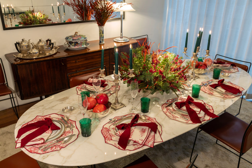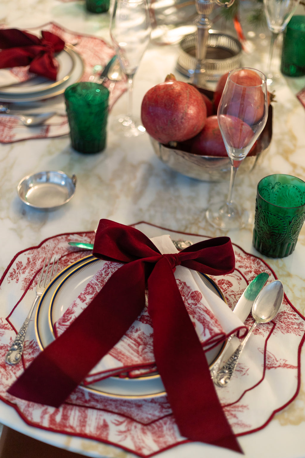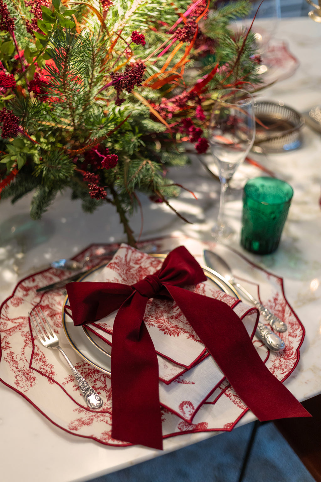 Faça mesas maravilhosas com o nosso conjunto individual e guardanapo em Toile de Jouy vermelho.