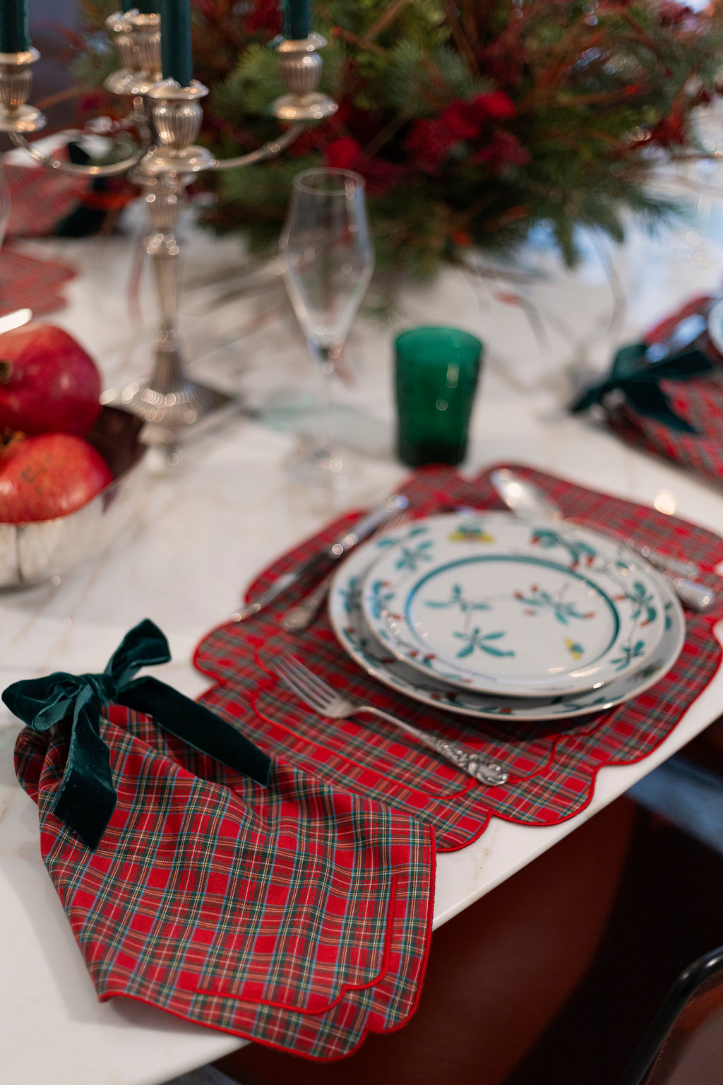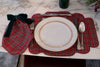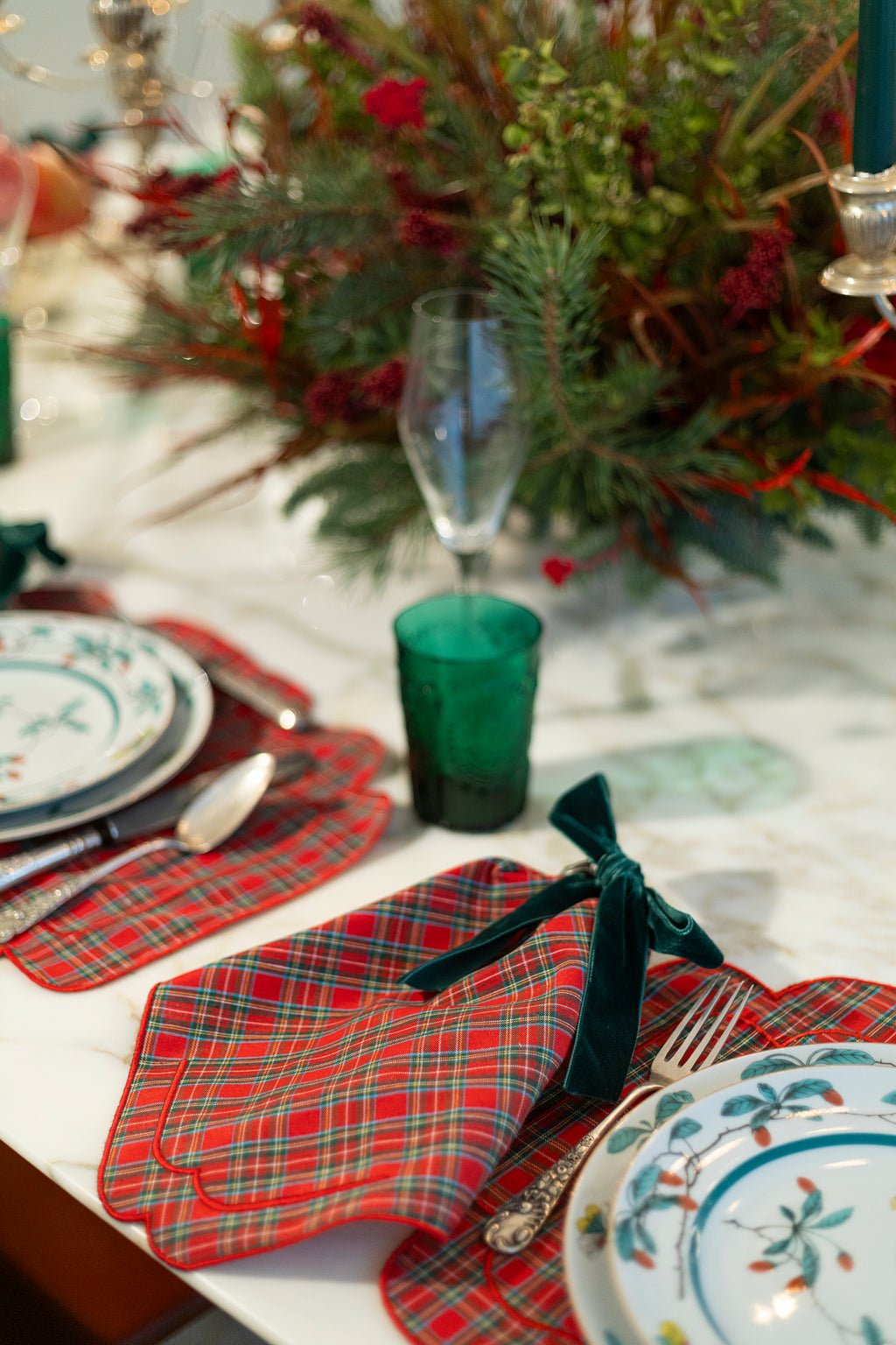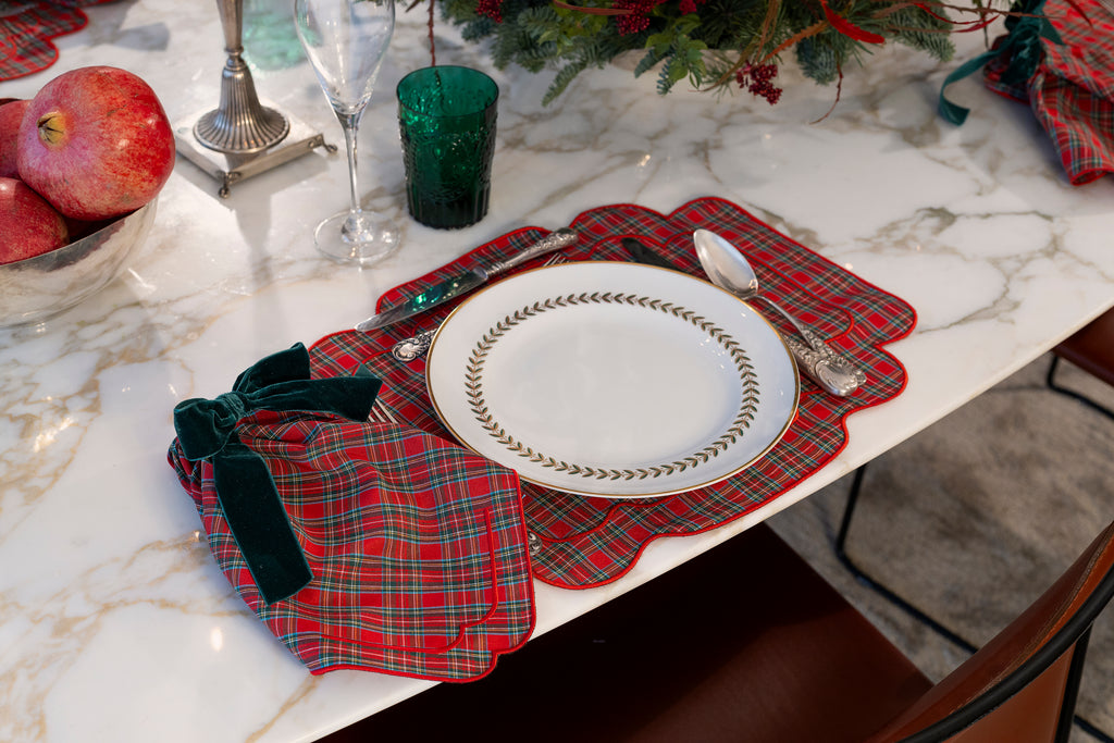 Pack 6 conjuntos Bari Xadrez vermelho (guardanapo + individual + Laço verde)