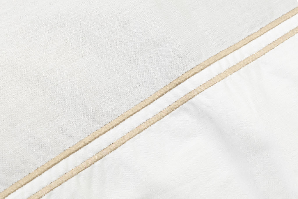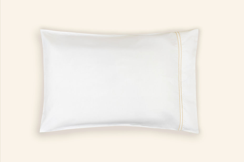 Conjunto de 2 fronhas em algodão percal 300 fios com dois rolinhos bordados na lateral.