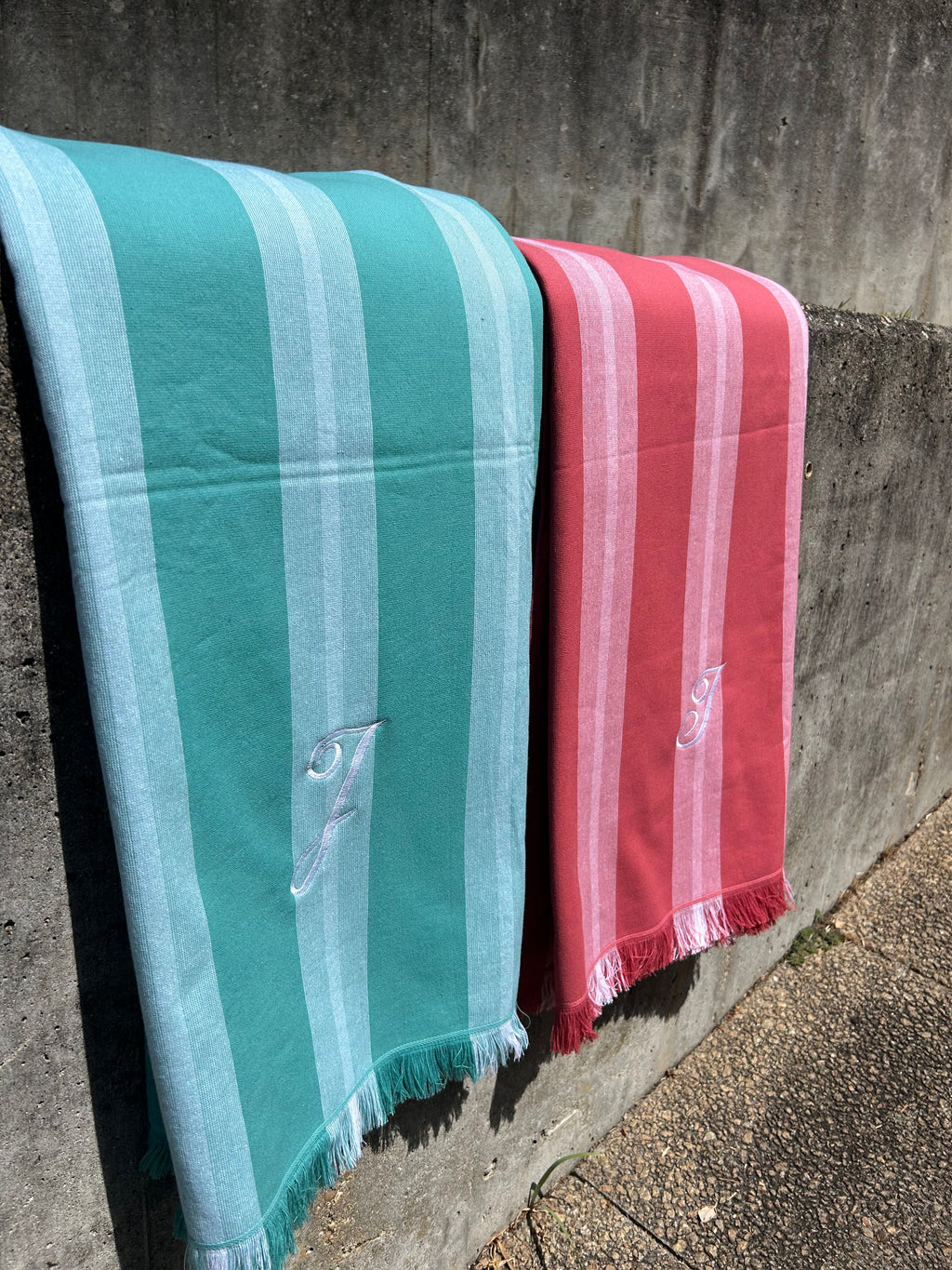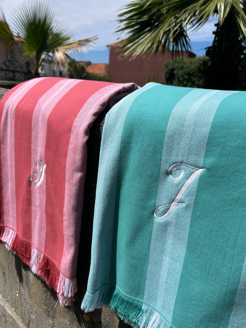 As nossas toalhas de praia são leves, absorventes, ocupam pouco e espaço e ainda podem ser personalizáveis com inicias ou nome próprio!