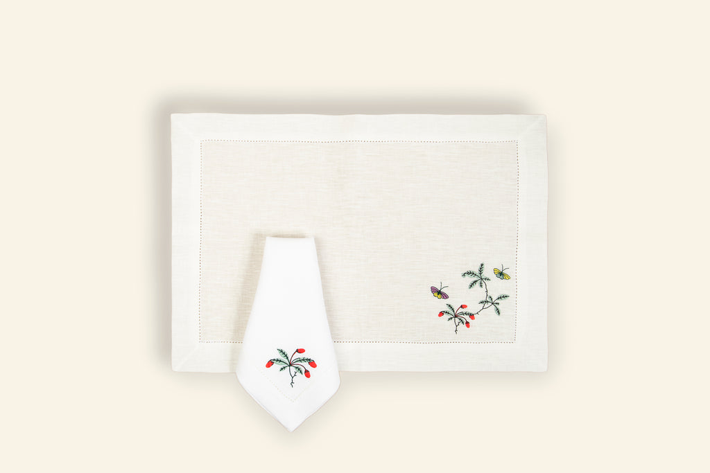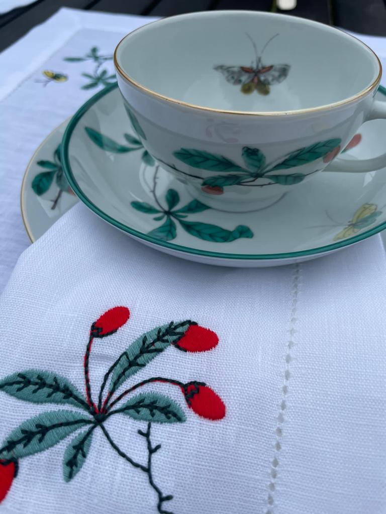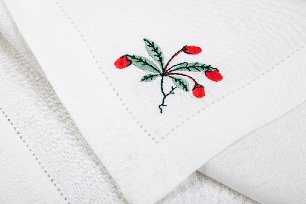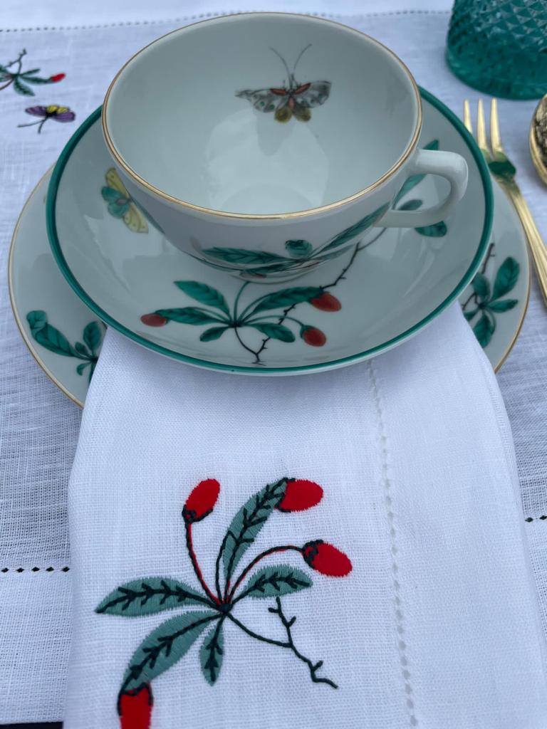 Estes guardanapos em formato quadrado, brancos e com desenhos inspirados no serviço "Família Verde" da Vista Alegre proporcionam um toque de sofisticação e beleza a qualquer mesa.