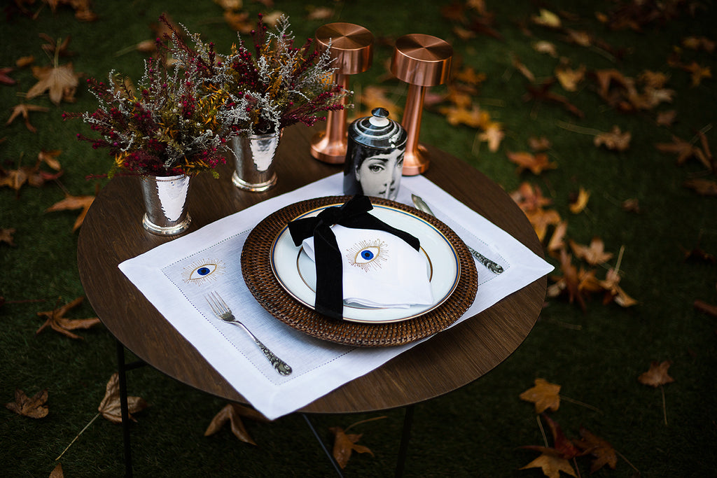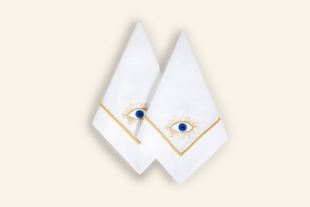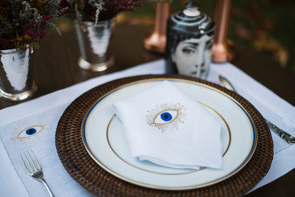 Combine o guardanapo Evil Eye com outras as outras peças do mesmo tema: individual e toalha de lavabo.